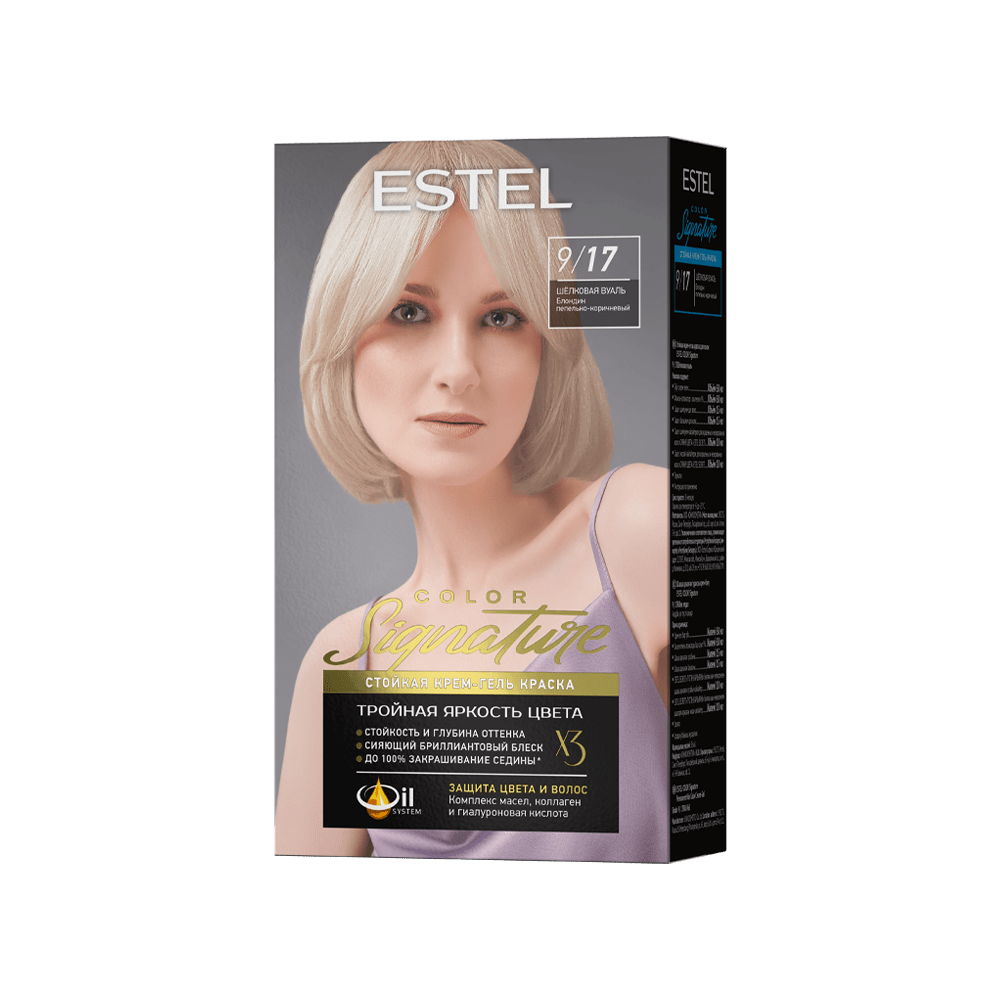 Описание Набор краска крем гель ESTEL COLOR SIGNATURE 60 мл и окисляющая эмульсия 6% 60 мл подходит для всех типов волос, обеспечивает равномерный и глубокий цвет на натуральных, окрашенных, седых, мелированных и осветлённых волосах. Перманентная стойкая краска подходит для тех, кто хочет обновить образ, выровнять цветовую базу для дальнейшего тонирования. В составе аммиачного тонирующего красителя масло авокадо и сладкий миндаль глубоко питает, придаёт гладкость, упругость и делает волосы визуально плотнее. Комплекс коллагена работает на восстановление и выравнивание структуры по всей длине. Благодаря гиалуроновой кислоте локоны остаются увлажнёнными и мягкими даже после окрашивания. Тонирующая краска легко наносится, равномерно распределяется и обеспечивает плотное покрытие. В результате - яркий, насыщенный цвет, полное закрашивание седины и мягкие, блестящие волосы с ухоженным видом. Продукт одобрен Системой сертификации «Халяль» Совета муфтиев России — знак высокого доверия, качества и чистоты состава. СПОСОБ ПРИМЕНЕНИЯ: для окрашивания сильно поседевших волос выберите тон на один уровень темнее вашего естественного цвета. Готовую смесь наносите на сухие волосы, без предварительного мытья головы. Начинайте нанесение смеси с затылочной части головы. Для оптимального сохранения стойкости цвета не рекомендуется мыть голову в течение 2-3 дней после окрашивания. Приготовление: оксигент выдавите в крем-гель, интенсивно встряхните до перемешивания компонентов. Нанесите на волосы и оставьте на 35-40 минут. По истечении времени окрашивания с помощью небольшого количества воды легкими массирующими движениями вспеньте краску. Тщательно промойте большим количеством теплой воды, пока вода не станет прозрачной.