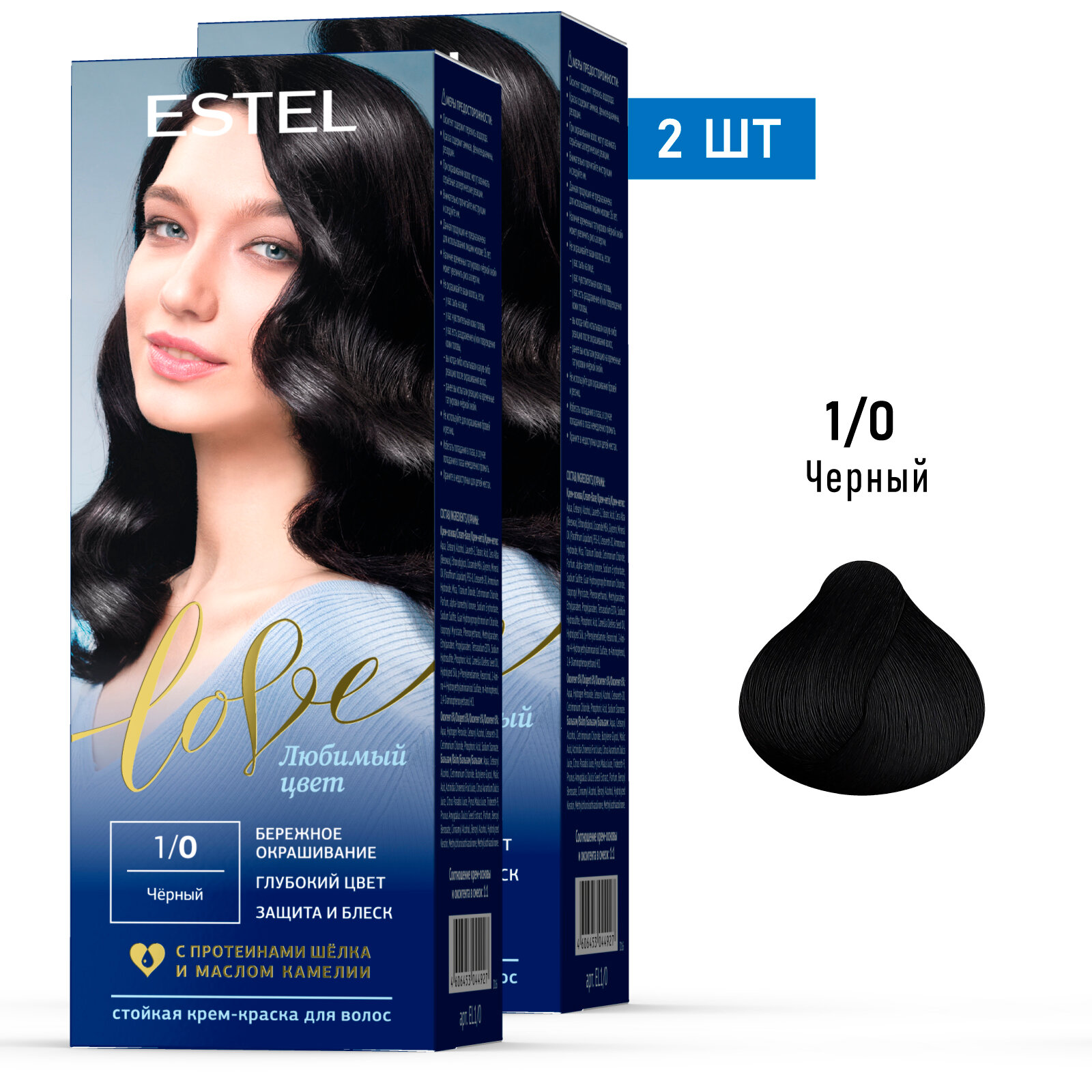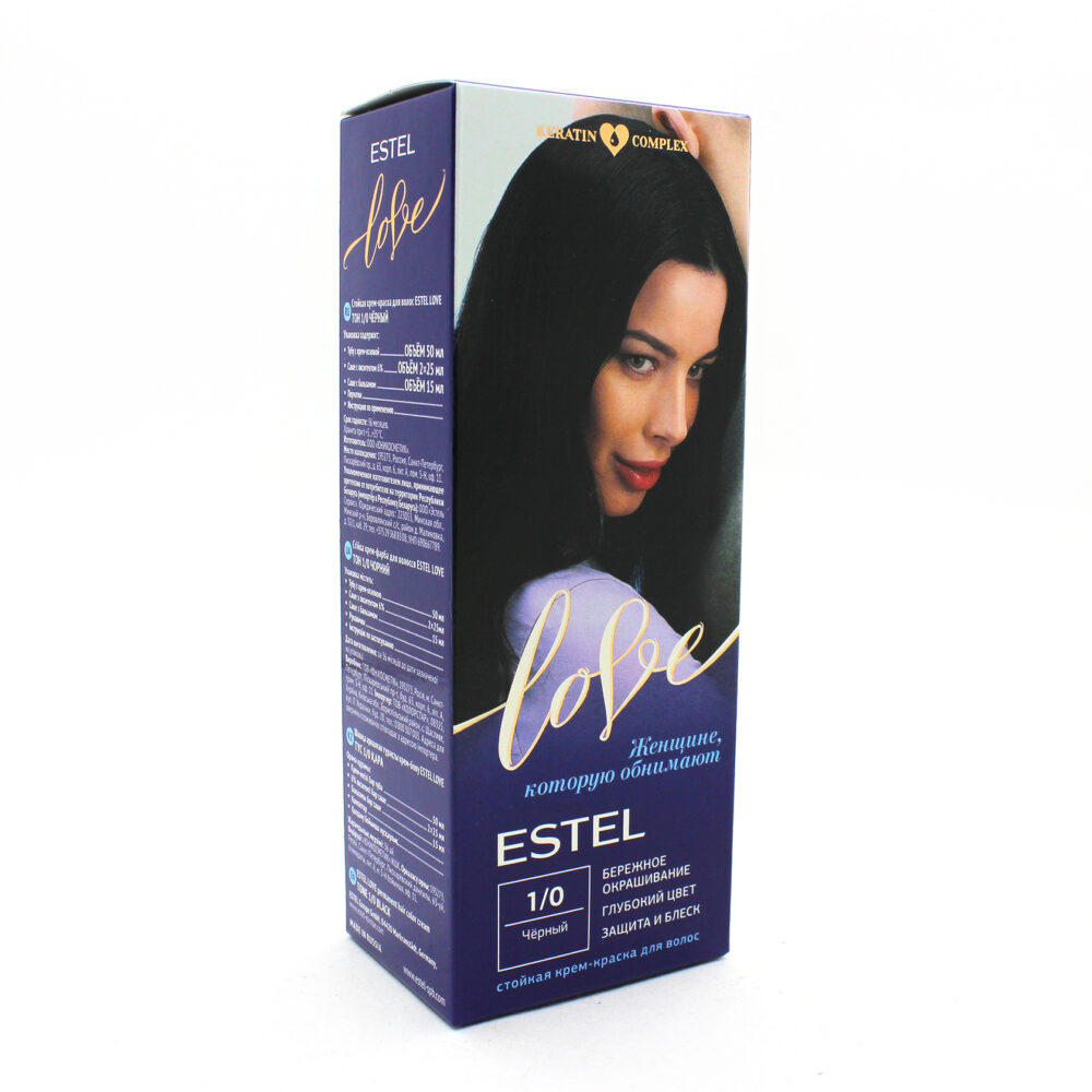 Стойкая крем-краска Estel Love : 1/0 Черный. Описание: Максимально мягкое воздействие на структуру волос. Компоненты краски обеспечивают бережное окрашивание и превосходный уход. Обогащённая натуральными компонентами - маслом иланг-иланга и пчелиным воском - формула гарантирует качественный уход, равномерное нанесение и 100% закрашивание седины. В результате волосы приобретают жизненую силу и глубокий цвет. Бережная защита от внешних факторов и кристальный блеск. Содержимое: - Туба с крем-основой - Саше с оксигентом 6% - Саше с бальзамом - Перчатки - Инструкция по применению