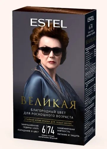 Стойкая крем-краска для седых волос ESTEL ВЕЛИКАЯ 6/74 тёмно-русый коричнево-медный(150мл)