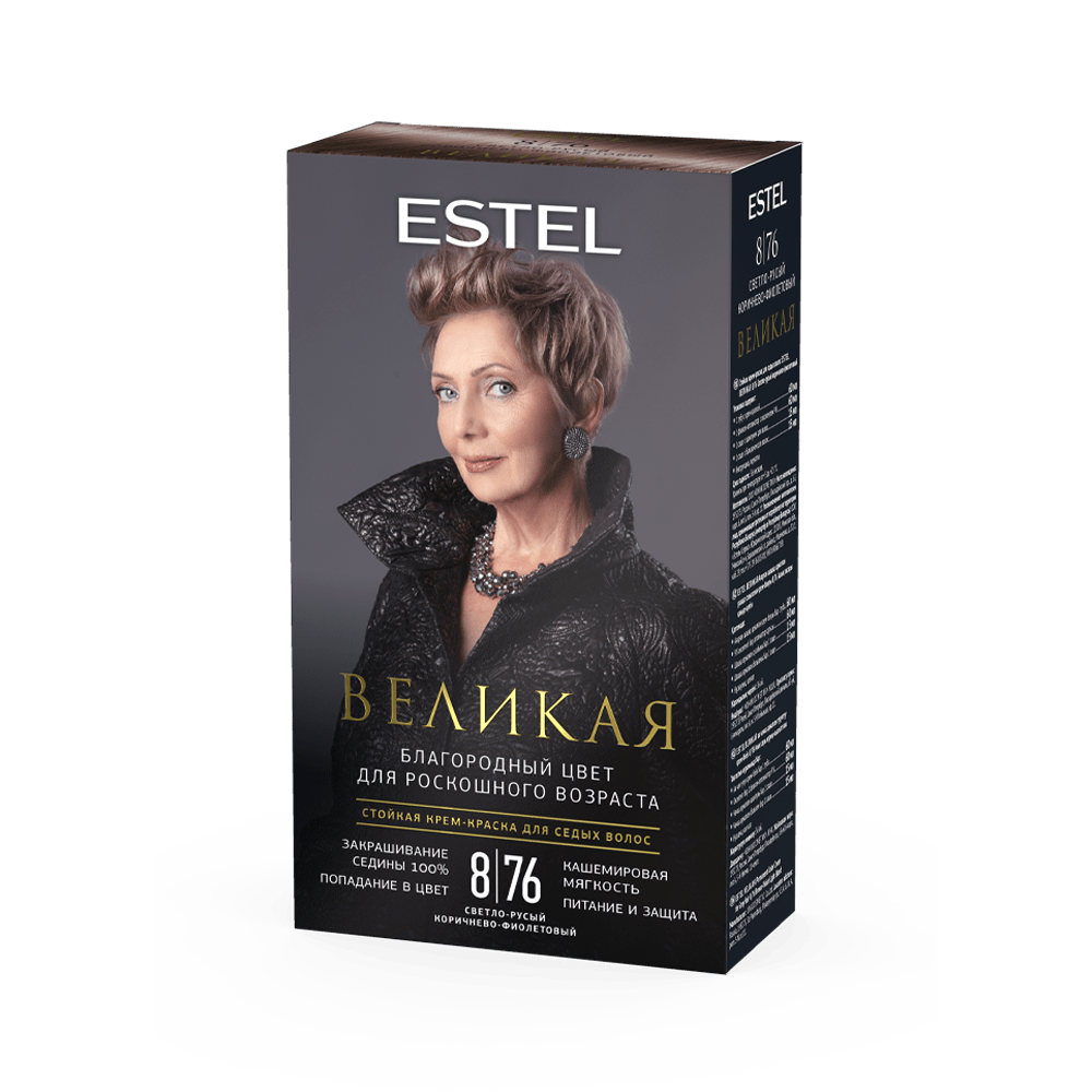 Стойкая крем-краска для седых волос ESTEL ВЕЛИКАЯ 8/76 светло-русый коричнево-фиолетовый(150мл)