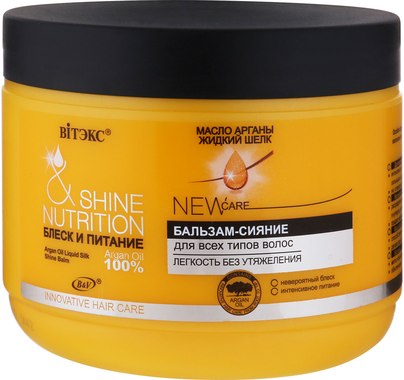 Бальзам-сияние Вiтэкс БЛЕСК И ПИТАНИЕ Масло арганы + жидкий шёлк 500мл