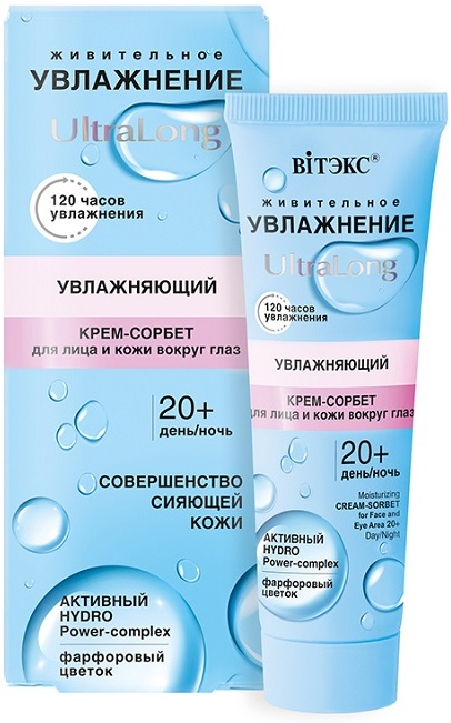 Крем-сорбет для лица и кожи вокруг глаз ВИТЭКС Увлажнение UltraLong 20+ день-ночь, 40 мл
